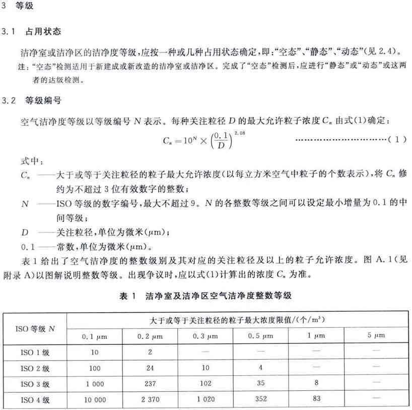 潔凈室及相關(guān)受控環(huán)境第1部分:空氣潔凈度等級(jí) GB/T25915.1-2010